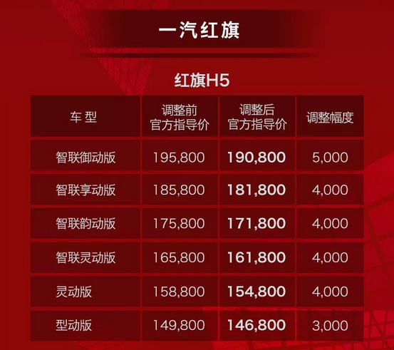 中國汽車新聞網(wǎng)訊 近日,一汽紅旗為積極響應(yīng)國家的“減稅降費(fèi)”政策,將汽車制造業(yè)稅率從原來的16%下降到13%。中國一汽旗下品牌部分在售車型下調(diào)官方指導(dǎo)價(jià)。