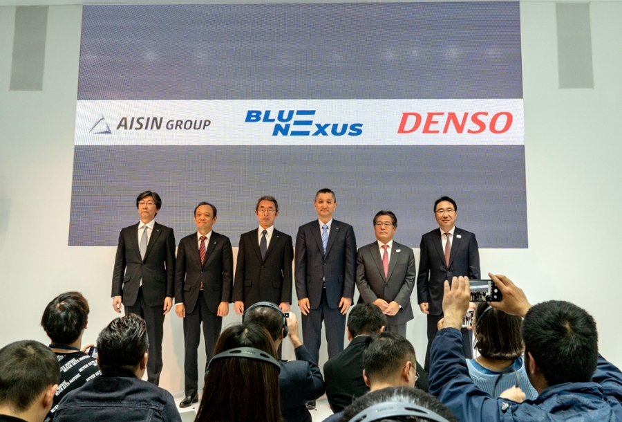 中國汽車新聞網(wǎng)訊 日本知名的2家汽車零部件制造商——愛信集團(tuán)(以下簡稱愛信)以及株式會(huì)社電裝(以下簡稱電裝)出展了于4月16日~4月25日舉辦的“2019第18屆上海國際汽車工業(yè)博覽會(huì)”。4月17日,愛信與電裝首次舉辦了聯(lián)合新聞發(fā)布會(huì),向大家介紹了雙方投資的新公司“BluE Nexus”。愛信精機(jī)(中國)投資有限公司總經(jīng)理伊藤慎太郎、電裝(中國)投資有限公司董事長梶田宜孝、株式會(huì)社BluE Nexus總裁山口幸藏、副總裁竹內(nèi)克彥出席了本次發(fā)布會(huì)。