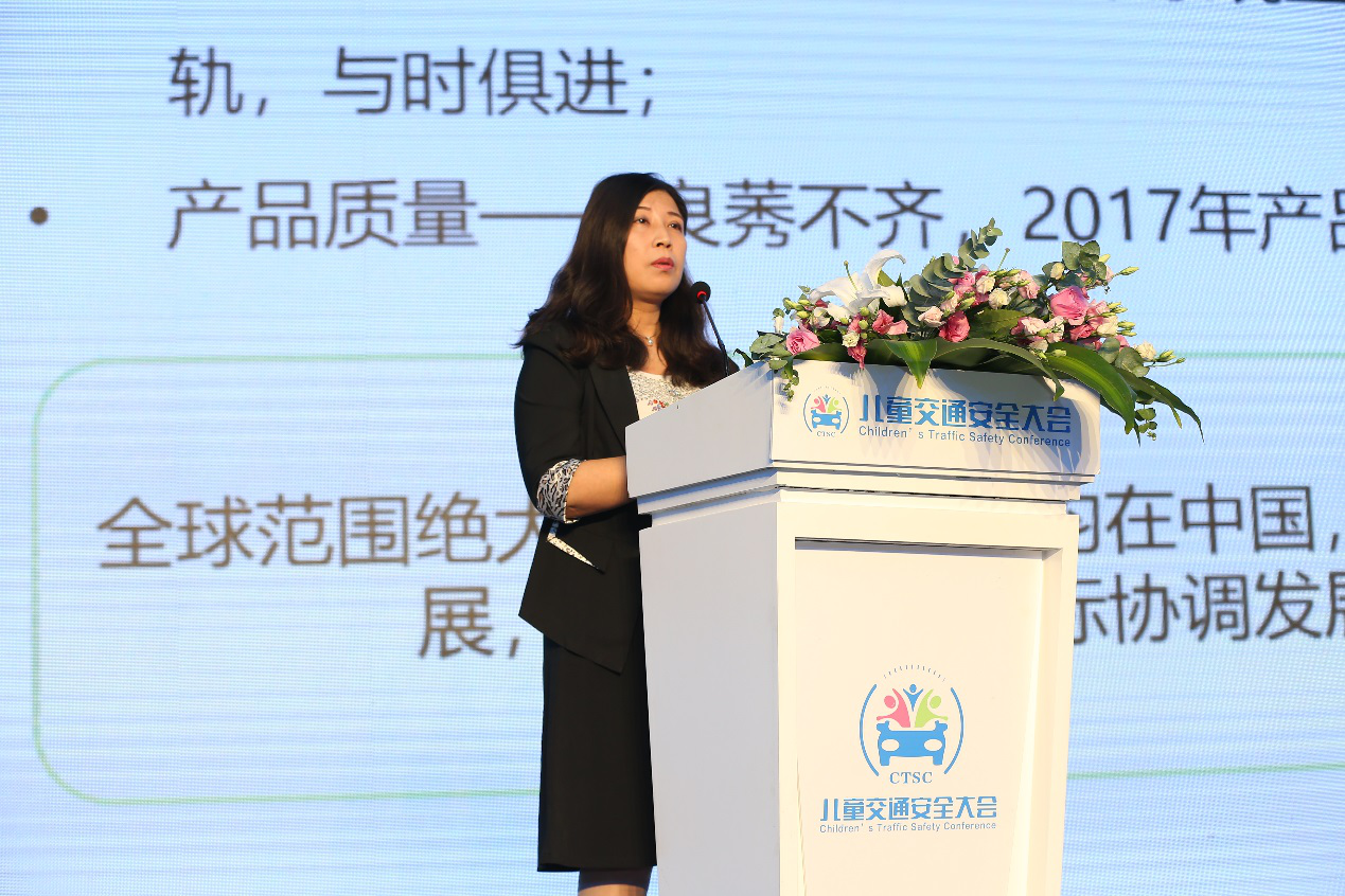 中汽中心汽車標(biāo)準(zhǔn)化研究行業(yè)服務(wù)室主任李維菁介紹兒童約束系統(tǒng)標(biāo)準(zhǔn)法規(guī)發(fā)展概況