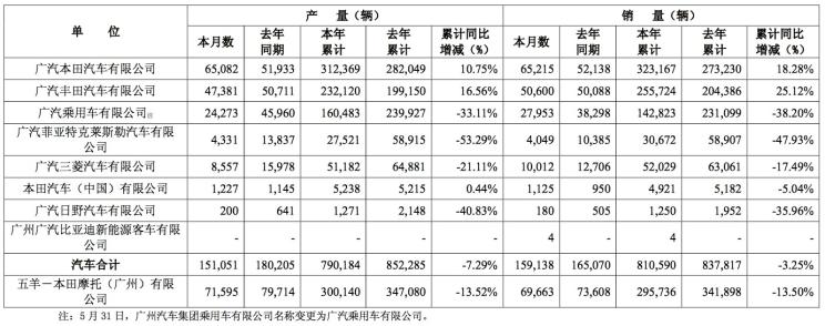 中國(guó)汽車(chē)新聞網(wǎng)訊 日前,廣汽集團(tuán)發(fā)布了5月份產(chǎn)銷(xiāo)快報(bào)。數(shù)據(jù)顯示,5月廣汽集團(tuán)汽車(chē)銷(xiāo)量為15.91萬(wàn)輛,相比去年同期的16.51萬(wàn)輛相比,同比降低3.6%。1-5月廣汽集團(tuán)銷(xiāo)量為81.06萬(wàn)輛,同比降低3.25%。從細(xì)分品牌的銷(xiāo)量情況來(lái)看,廣汽豐田和廣汽本田成為廣汽集團(tuán)的主要銷(xiāo)量支柱品牌。