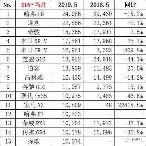 5月份排名前十五SUV車型中,自主品牌有五款車型,但是多數(shù)車型出現(xiàn)兩位數(shù)下滑,哈弗F7月銷量已穩(wěn)定萬輛,成為自主品牌不多的亮點。本田兩款SUV車型——XR-V與CR-V繼續(xù)表現(xiàn)出色,同比均有兩位數(shù)以上的增幅。