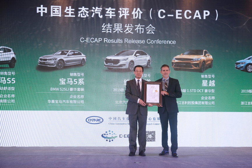 中汽中心副總經(jīng)理、C-ECAP管理中心主任 李洧為華晨寶馬汽車有限公司寶馬5系頒發(fā)認(rèn)證證書