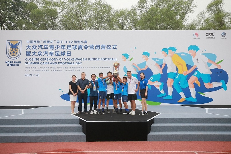 中國(guó)汽車新聞網(wǎng)訊 7月20日,大眾汽車集團(tuán)(中國(guó))攜手中華全國(guó)體育基金會(huì)、中國(guó)足球協(xié)會(huì)共同發(fā)起的“大眾汽車青少年足球夏令營(yíng)暨中國(guó)足協(xié)‘希望杯’U12組別比賽”在國(guó)家奧林匹克體育中心圓滿落幕。中華全國(guó)體育基金會(huì)副理事長(zhǎng)薛萬(wàn)河、中國(guó)足球協(xié)會(huì)副秘書長(zhǎng)兼市場(chǎng)開發(fā)部部長(zhǎng)劉潔、大眾汽車集團(tuán)(中國(guó))企業(yè)社會(huì)責(zé)任部高級(jí)總監(jiān)殷進(jìn)、前國(guó)家隊(duì)隊(duì)員和德甲名人堂成員邵佳一,一同出席閉幕式及“大眾汽車足球日”活動(dòng)。在為期5天的夏令營(yíng)比賽中,來(lái)自中國(guó)足球協(xié)會(huì)下設(shè)的12家青訓(xùn)中心的青少年球員開展了30場(chǎng)緊張激烈的對(duì)抗賽。
