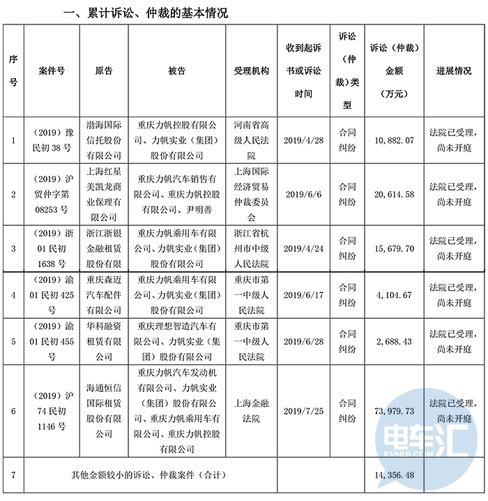 事實上,早在今年6月份,力帆股份就曾發(fā)公告說明因重慶力帆乘用車有限公司向橫琴金投國際融資租賃有限公司通過融資租賃形式融資1億元,有部分逾期,因此力帆控股所持有的無限售流通股約6.04億股股份被凍結(jié)。而在力帆股份最新的一份累計訴訟事項的公告中,涉案金額已超14億元。