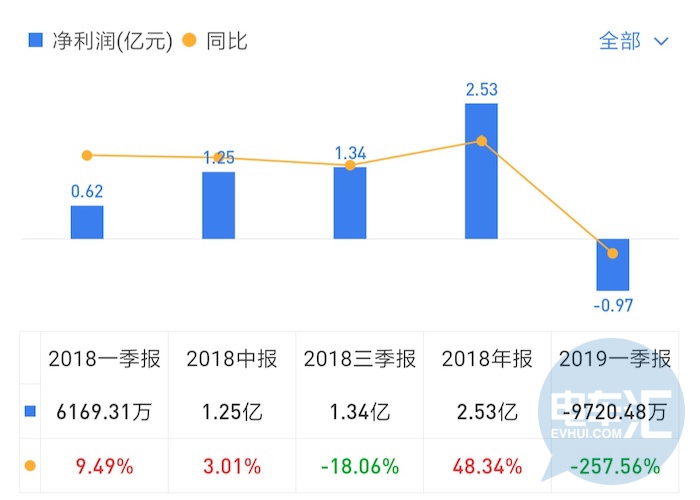 但這也只是杯水車薪,一旦沒有額外的輸血,問題就暴露出來了。財報顯示,2019年一季度營收22.47億元,同比下降31.07%;凈利潤虧損9720.48萬元,同比下滑257.56%。