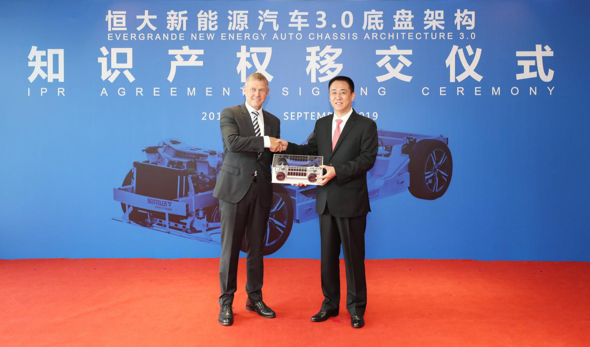 恒大新能源汽車集團(tuán)與德國(guó)BENTELER集團(tuán)、FEV集團(tuán)簽訂3.0底盤架構(gòu)知識(shí)產(chǎn)權(quán)移交協(xié)議