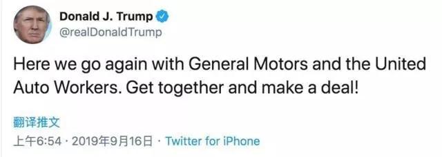 為此美國總統(tǒng)特朗普在推特上寫道:“希望通用汽車公司和UAW能達成協(xié)議。”但沒有表明他的立場。
