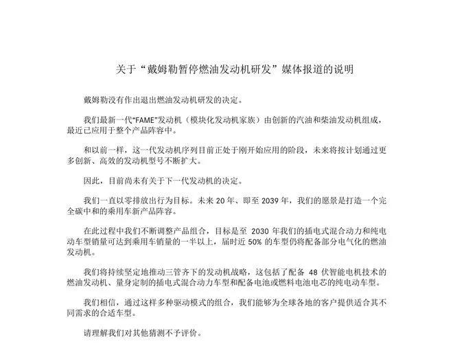 戴姆勒發(fā)聲明否認暫停研發(fā)燃油發(fā)動機