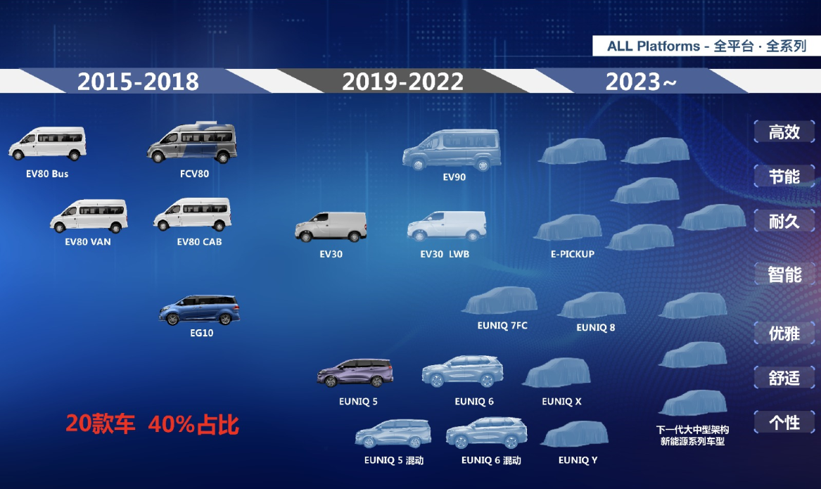 “全平臺(tái)·全系列”的“全平臺(tái)”方面,2025年底前,上汽MAXUS將持續(xù)推出超過20款的新能源車型,屆時(shí)新能源年銷量占比將超過40%。在“全系列”的產(chǎn)品布局方面,上汽MAXUS即會(huì)布局偏商業(yè)使用場(chǎng)景的新能源車型,也會(huì)全速發(fā)力布局注重個(gè)人使用、多人出行的EUNIQ系列車型。智能駕駛技術(shù)方面,從L2.5的高速公路自動(dòng)駕駛、擁堵路況隨行、自主泊車到L4的無人駕駛,都將廣泛應(yīng)用到商業(yè)和個(gè)人兩種使用場(chǎng)景的車型上。