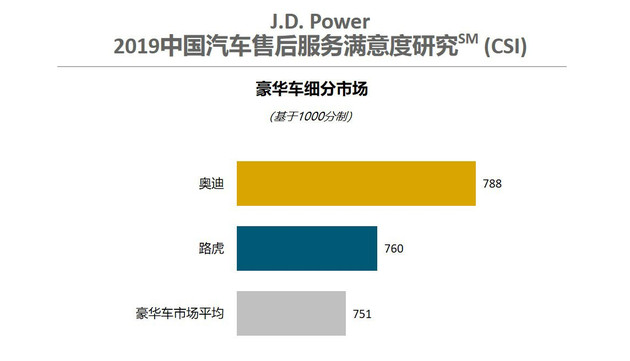 奧迪以788分位居豪華車(chē)細(xì)分市場(chǎng)售后服務(wù)滿(mǎn)意度榜首。路虎以760分排名第二。