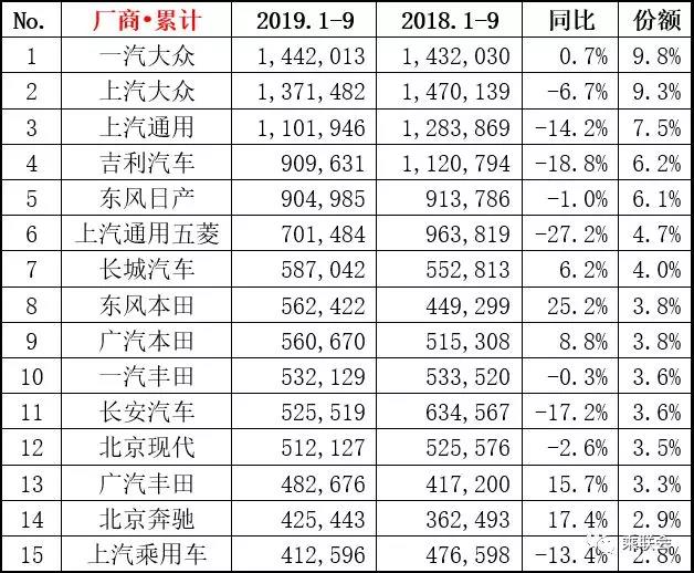 而在1-9月銷量排行中,吉利依然領(lǐng)先東風(fēng)日產(chǎn)“半個(gè)身位”排名第四,長(zhǎng)城汽車穩(wěn)固住第七名,長(zhǎng)安汽車與上汽乘用車雖然累計(jì)銷量同比仍呈負(fù)數(shù),但是9月份均止住下滑趨勢(shì),進(jìn)一步穩(wěn)固榜單上的名次。