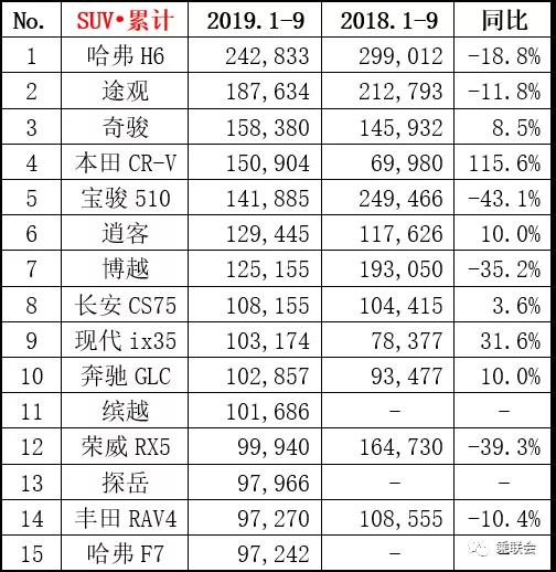 1-9月SUV累計(jì)銷量645.2萬輛,同比下降5.8%。哈弗H6領(lǐng)先優(yōu)勢(shì)非常明顯,但同比有接近20%的銷量下滑。途觀相比去年也有明顯下滑。但是繽越、探岳、哈弗F7等新車型逐步站穩(wěn)腳跟。無論是合資還是自主品牌,今年投入多款很有競(jìng)爭(zhēng)力SUV車型,可以預(yù)見未來SUV市場(chǎng)競(jìng)爭(zhēng)將會(huì)更加激烈,排名變動(dòng)也會(huì)非常頻繁。