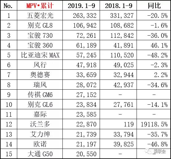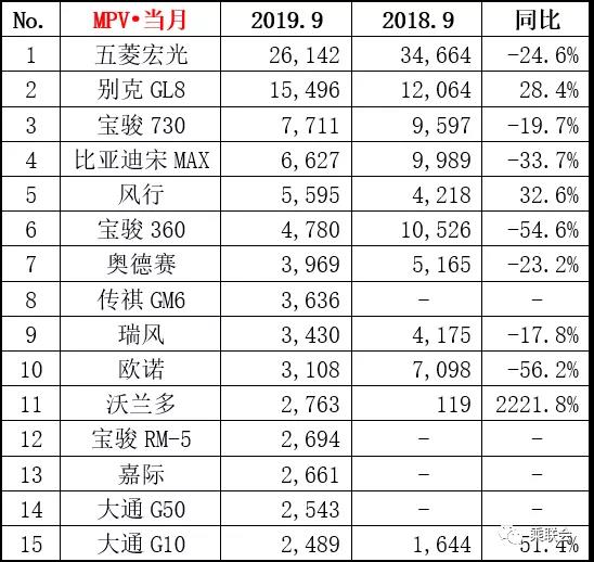 9月份MPV銷量11.4萬輛,同比下降14.5%,環(huán)比增長(zhǎng)16.0%。在月銷量排行前五名車型中,有三款車型仍出現(xiàn)20%以上的同比下滑。但是同樣也有兩款車型同比大幅上漲。一款是別克GL8車型,在商務(wù)MPV領(lǐng)域中未有對(duì)手,逆勢(shì)獲得更多訂單;另一款是東風(fēng)風(fēng)行,隨著國(guó)六版車型供應(yīng)逐步提升,銷量也逐漸回暖。