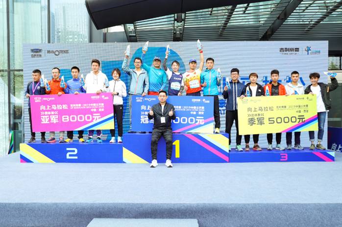 此次西安熱身賽過程中,來自全國(guó)各地的501位馬拉松愛好者、吉利車主、合作伙伴、媒體朋友等組成數(shù)十個(gè)向上跑團(tuán),競(jìng)速攀登238米高、52層的中鐵西安中心,充分展現(xiàn)了勇于攀登、挑戰(zhàn)極限的向上精神。其中,團(tuán)隊(duì)賽中的B-05組、A-07組、D-06組三個(gè)跑友團(tuán)分別獲得團(tuán)隊(duì)賽的冠亞季軍,蹇穆華和王桓分別以8分02秒和7分08秒的成績(jī)榮登女子組冠軍和男子組冠軍。