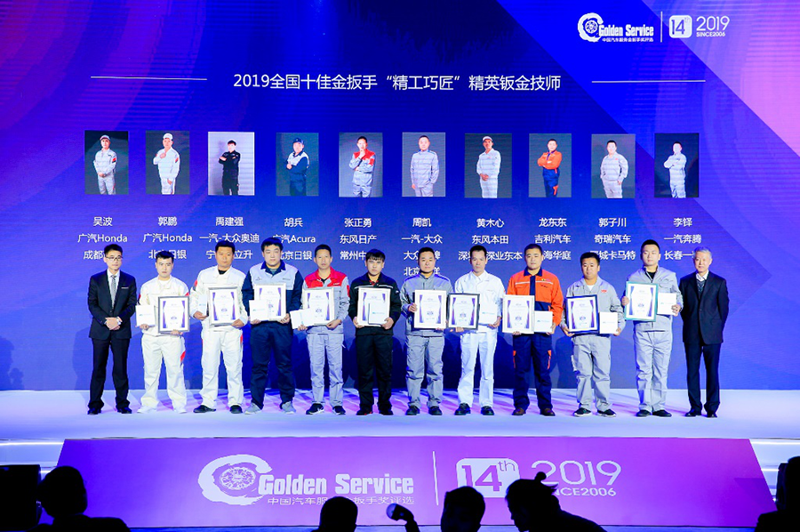 經(jīng)銷(xiāo)商體系的發(fā)展,也是主辦方持續(xù)關(guān)注的領(lǐng)域。繼成功舉辦2017年全國(guó)精英技師評(píng)選、2018年服務(wù)顧問(wèn)評(píng)選之后,今年主辦方將鈑金技師納入到針對(duì)經(jīng)銷(xiāo)商服務(wù)崗位的評(píng)選體系中,并策劃開(kāi)展了評(píng)選。此次,共有來(lái)自13個(gè)獲獎(jiǎng)品牌的全國(guó)60名優(yōu)秀鈑金技師參與評(píng)選,他們歷經(jīng)初選推薦、線上投票、在線答題、鈑金實(shí)操作業(yè)、專(zhuān)家評(píng)審及評(píng)委會(huì)終審等多個(gè)環(huán)節(jié),層層選拔,嚴(yán)格考驗(yàn),最終全國(guó)十強(qiáng)精英脫穎而出,榮獲“2019全國(guó)十佳金扳手‘精工巧匠’精英鈑金技師”稱(chēng)號(hào)!