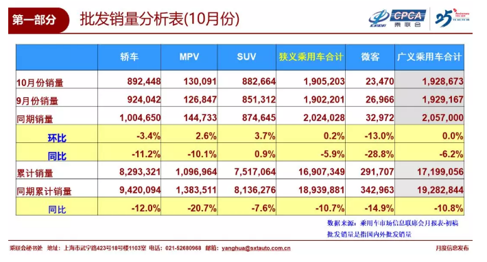 中國汽車新聞網訊 11月8日,中國汽車流通協(xié)會汽車市場研究分會(乘聯(lián)會)公布了車市最新的最新綜合銷量數(shù)據(jù)。10月全國乘用車市場零售184.3萬臺,同比下降5.7%,今年1-10月狹義乘用車零售同比下降8.3%,10月零售環(huán)比增長3.5%。