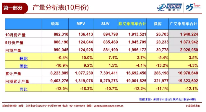產量方面,10月乘用車生產191.4萬臺,同比18年10月下降4.1%,環(huán)比9月增長3.7%,廠家?guī)齑孑^9月下降0.1萬臺。雖然部分企業(yè)國六車型的逐步到位,但企業(yè)生產安排極其謹慎,亟待市場反饋速度升級。