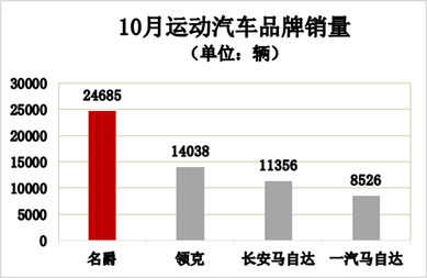 中國汽車新聞網(wǎng)訊 名爵品牌10月銷量24685輛,環(huán)比勁增18%、同比增長16.4%,再拿運動汽車品牌銷量第一。今年1月-10月,名爵品牌銷量達215294輛,同比增長近10%,成銷量增速最快的國際汽車品牌。其中全新名爵ZS的10月銷量高達13505輛,奪得國產(chǎn)高端小型SUV銷量第一!純電動名爵EZS銷量2549輛、環(huán)比大增42%。