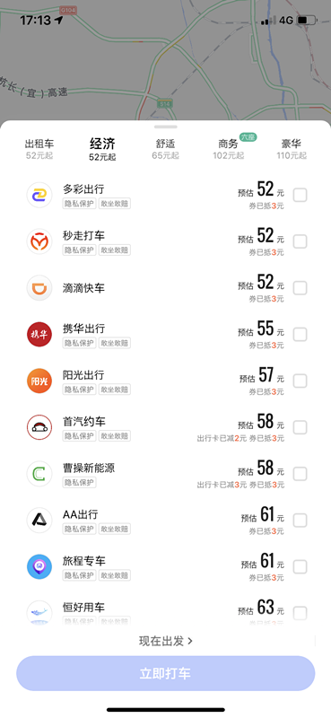 記者了解到,此次推出“敢坐敢賠”的27家網(wǎng)約車平臺(tái),包括首汽約車、嘀嗒出行、AA出行、秒走打車、T3出行、歐了出行、旅程專車等。用戶打開高德地圖進(jìn)入打車界面,加入“敢坐敢賠”的網(wǎng)約車服務(wù)商名稱后會(huì)顯示“敢坐敢賠”標(biāo)簽,方便進(jìn)行選擇。