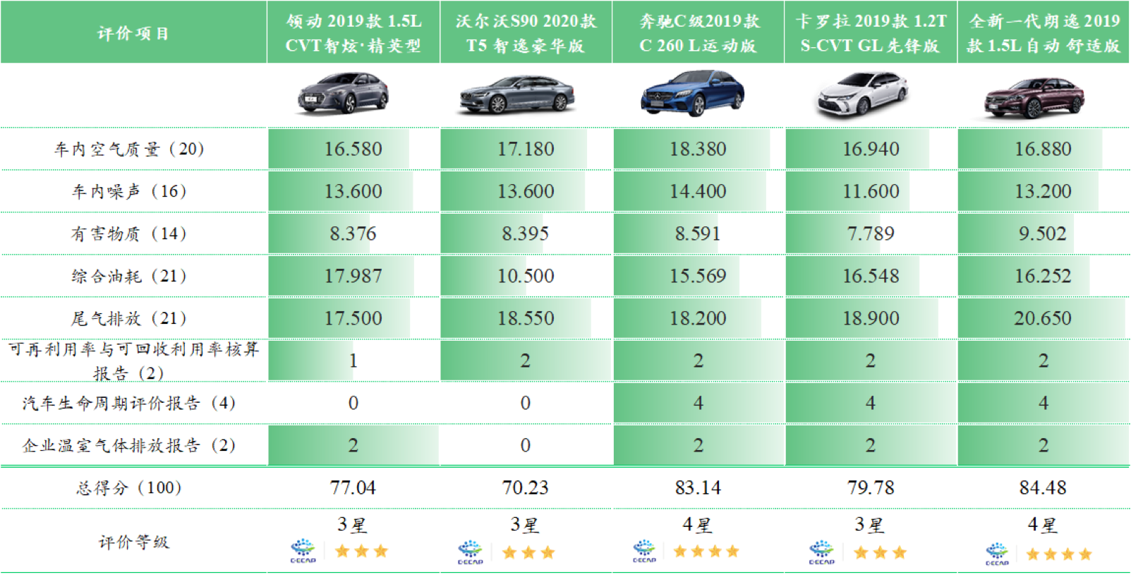 領動得分率最高86%,卡羅拉、朗逸、奔馳C 260 L分別以79%、77%、74%的得分率緊隨其后,沃爾沃S90在油耗項目中得分較低,得分率僅為50%。未來隨著油耗法規(guī)壓力的加大,車企仍需不斷提升傳統(tǒng)燃油動力的節(jié)能技術,以縮小如今日益拉大的得分差距。
