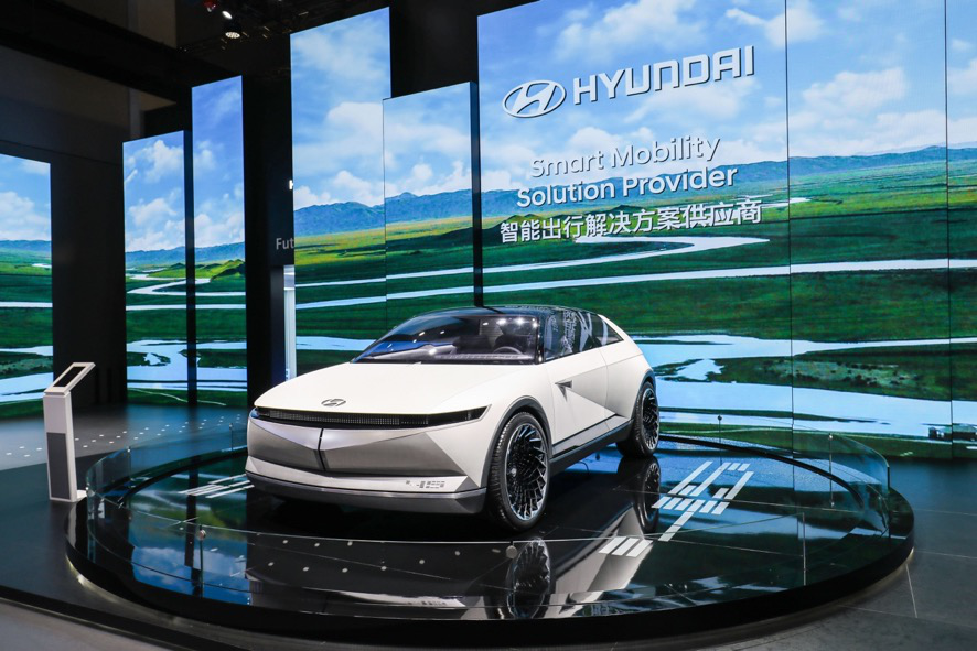 除了市場表現(xiàn)良好的,KONA EV(昂希諾純電動)之外,現(xiàn)代汽車全新一代EV概念車45在今年上海進(jìn)博會上完成中國首次亮相。它是面向未來推出的一款充滿創(chuàng)新精神、彰顯性能、環(huán)保技術(shù)實力與EV設(shè)計愿景的概念產(chǎn)品。45概念車以現(xiàn)代汽車EV里程碑的姿態(tài),正式開啟電動汽車設(shè)計的新時代。
