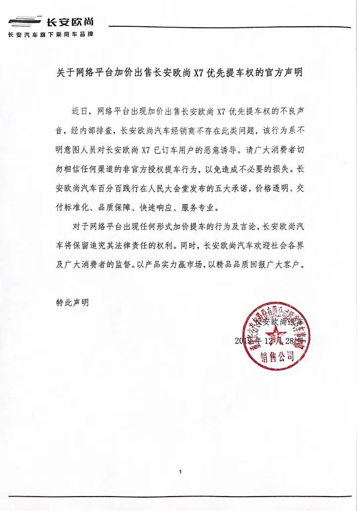 長安歐尚汽車品牌營銷部總經(jīng)理鄧智濤還表示;“我們對于網(wǎng)絡(luò)加價轉(zhuǎn)賣優(yōu)先提車特權(quán)的現(xiàn)象已做出嚴(yán)肅徹查,此事純屬謠言,并無根據(jù)。作為長安汽車旗下乘用車品牌,我們向全體媒體及客戶保證長安歐尚汽車經(jīng)銷商絕不會出現(xiàn)加價提車現(xiàn)象。截至目前,長安歐尚汽車的所有交車計劃都是按照終端預(yù)定的先后順序有序進行。”