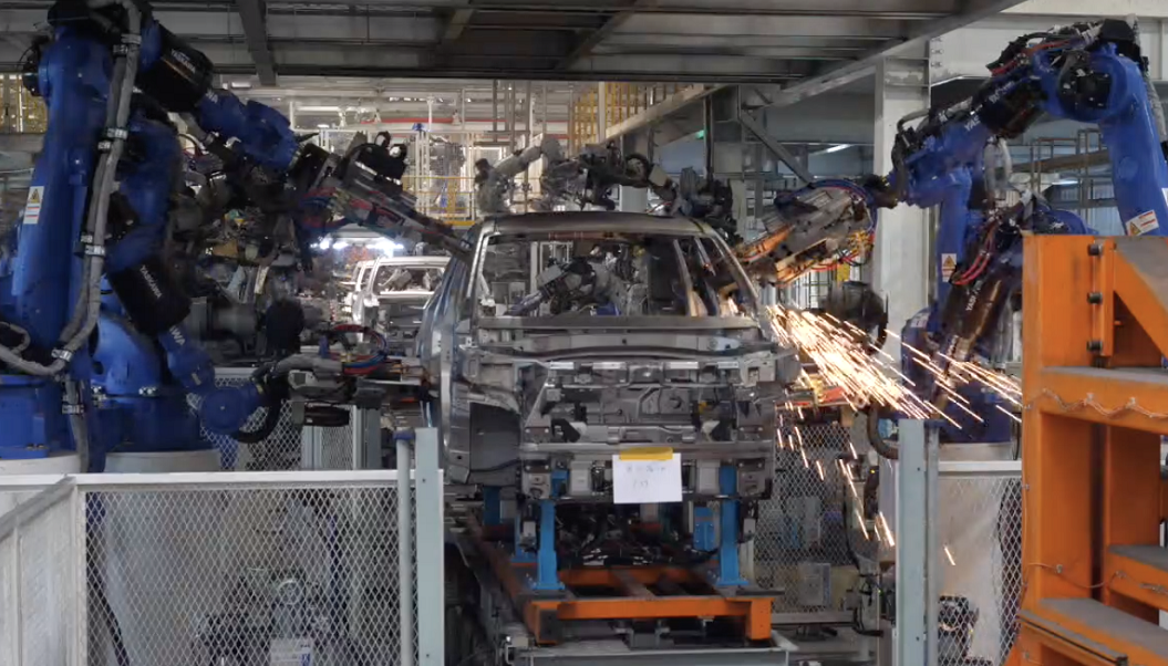 在觀看焊裝車間的直播過程中,讓人恍惚覺得觀摩了一場現(xiàn)實(shí)版的“機(jī)器人大戰(zhàn)”,在搬運(yùn)、點(diǎn)焊、凸焊等專業(yè)性操作中,所有機(jī)器人都有條不紊。