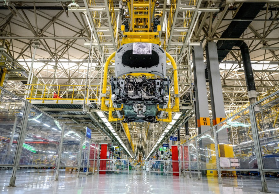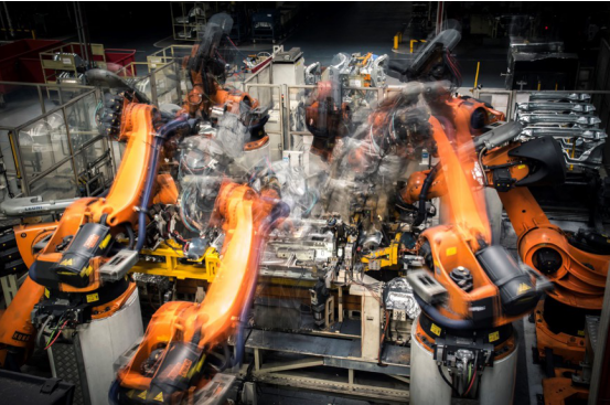 焊裝車間仿佛“科幻片場(chǎng)”。788臺(tái)KUKA機(jī)器人,井然有序揮動(dòng)著“手臂”,上演著精準(zhǔn)操作,以嚴(yán)密如拉鏈的先進(jìn)激光焊接技術(shù),構(gòu)筑車輛的“鋼筋鐵骨”。