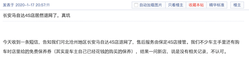 除了這家4S店以外,從各大汽車網(wǎng)站論壇和汽車投訴平臺(tái)都可以發(fā)現(xiàn)馬自達(dá)經(jīng)銷商退網(wǎng)的痕跡。以位于衡水的某長安馬自達(dá)4S店為例,最早有車主在2019年10月就進(jìn)行投訴,稱該店突然閉店,導(dǎo)致大多車主的押金無法賠付。而投訴進(jìn)度還顯示處理中。