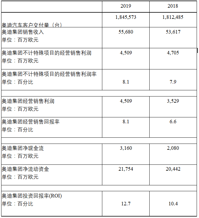 奧迪集團(tuán)2019財(cái)年的財(cái)務(wù)成果為7.13億歐元。稅前利潤則為52.23億歐元,同比增長19.8%。奧迪集團(tuán)2019財(cái)年的凈現(xiàn)金流為31.60億歐元,實(shí)際略高于2018年年報(bào)中所述的預(yù)測區(qū)間,再次證明了奧迪集團(tuán)強(qiáng)大的資金實(shí)力。