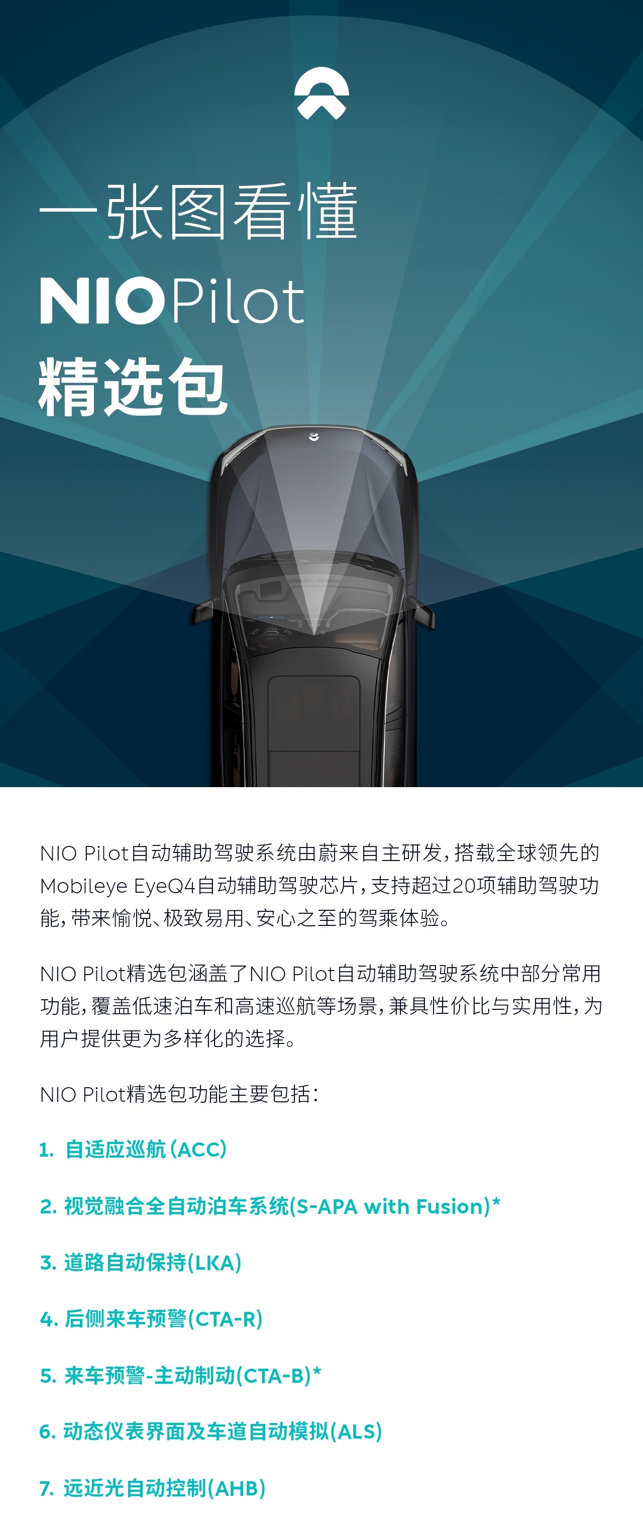結(jié)合蔚來ES8/ES6全系標(biāo)配的NIO Pilot基本功能,“精選包”功能能給大家?guī)韺?shí)用、智能的全新駕乘體驗。
