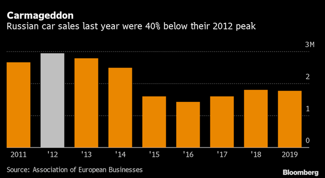 由于俄羅斯2014年吞并克里米亞造成的經(jīng)濟(jì)停滯,該國(guó)汽車銷量尚未恢復(fù)到2012年的高點(diǎn)。盡管俄羅斯的人口是意大利的兩倍多,但該國(guó)2019年的汽車銷量仍低于意大利。福特汽車已經(jīng)關(guān)閉在俄羅斯的兩家組裝工廠以及一家發(fā)動(dòng)機(jī)工廠,正式退出俄羅斯乘用車市場(chǎng)。
