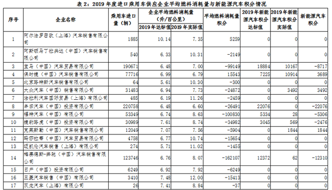 日前工信部公示了關于2019年度乘用車企業(yè)平均燃料消耗量與新能源汽車積分情況。