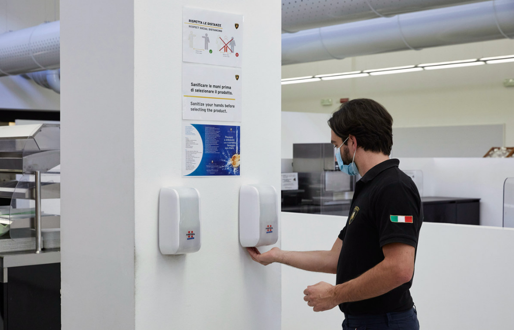 公司在3月13日暫停生產(chǎn)工作后,即與工會成立了應(yīng)對新冠肺炎疫情的聯(lián)合委員會,以對相關(guān)的緊急情況進行持續(xù)討論和決策,為5月4日復(fù)工所進行的準備工作也是委員會討論的議題。在過去的幾周中,兩方共同制定了詳盡的安全規(guī)程,從全面的教育行動開始,以管理復(fù)工的流程以及所需的設(shè)備使用,最大程度地保證蘭博基尼員工的安全。