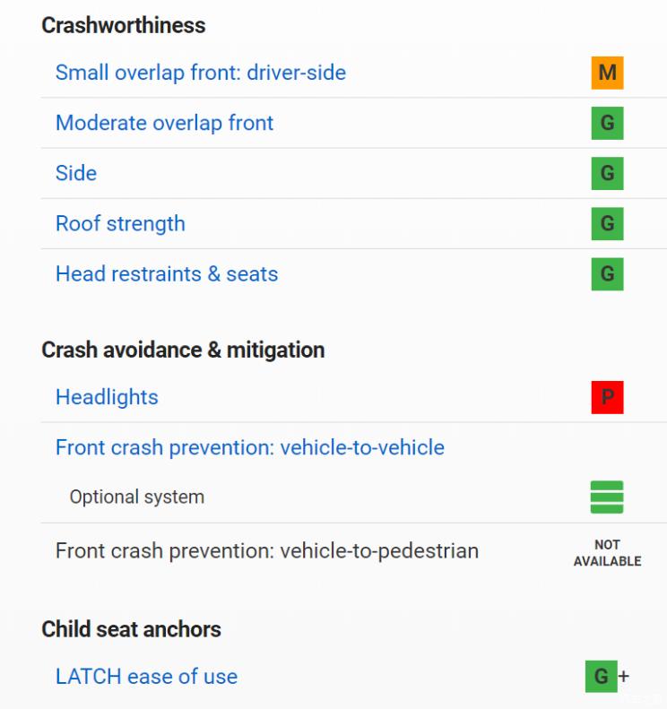 美國IIHS碰撞測試是全球諸多安全碰撞測試中最嚴格的一個,通過不斷增加碰撞測試項目,還原車輛發(fā)生事故后最真實的情況,并向消費者提供新車的碰撞安全指數(shù),同時這些成績也使得廠家更加關(guān)注新車的安全性能,并加以改進。