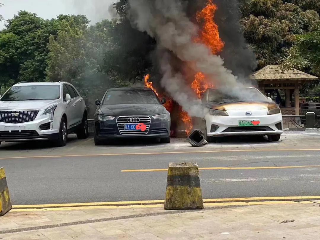 5月18日,廣州楊桃公園南門東側(cè)停車場內(nèi)一輛廣汽Aion S突發(fā)自燃,從社交媒體曝出的相關(guān)視頻來看,這輛車處于正常停放且在未充電的情況下發(fā)生自燃,現(xiàn)場火勢還是比較猛的,期間伴隨著小程度的爆炸,車輛尾部有可見的明火不斷冒出,燃燒產(chǎn)生了大量的濃煙。在這輛Aion S旁邊還停放著一輛奧迪A6L,在Aion S發(fā)生自燃后,這輛奧迪也受到牽連。