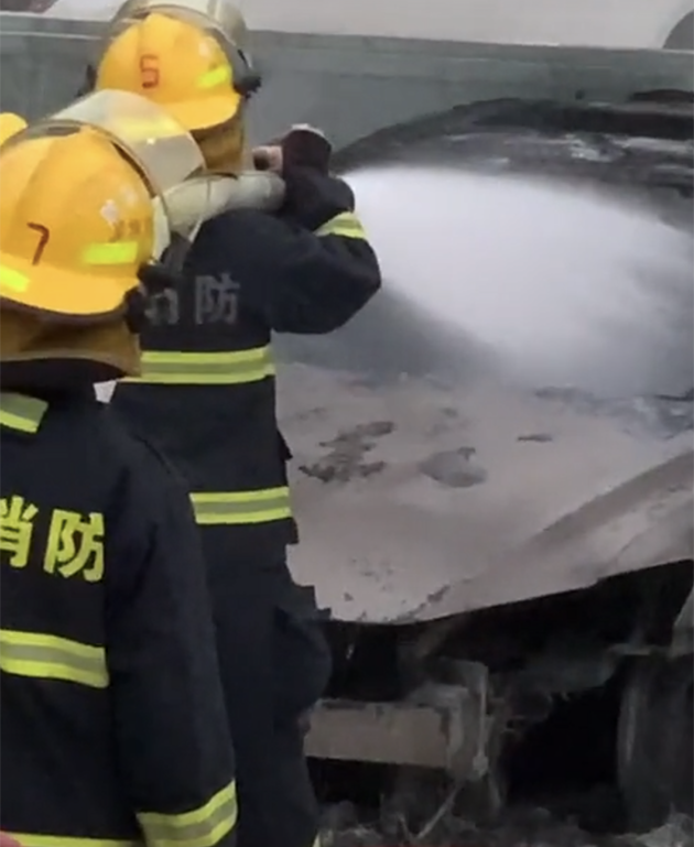 中國汽車新聞網(wǎng)訊 近日,社交平臺(tái)上曝光了一段汽車自燃視頻,從視頻中能夠看出是一輛比亞迪秦Pro EV正在起火燃燒,火勢(shì)迅速擴(kuò)大,雖然經(jīng)過消防人員奮力撲救,但遺憾的是最終車輛還是被燒毀,僅剩車架殘骸。