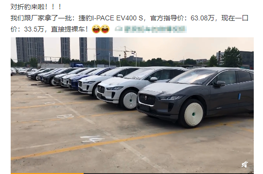 從曝光的截圖來看,五折拋售的車型是捷豹I-PACE EV400S的全新車,官方指導價為63.08萬元,而如今這款車打出了5.5折的特價,33.5萬元就可以直接提車。按照上面所標的價格計算,33.5萬元的落地價與目前國產特斯拉Model 3長續(xù)航版的售價較為接近。但是要注意的是,捷豹的這款純電動對標的并不是Model 3,而是更高級的Model X,現(xiàn)在這款電動車的價格被降到了特斯拉入門車型的級別。