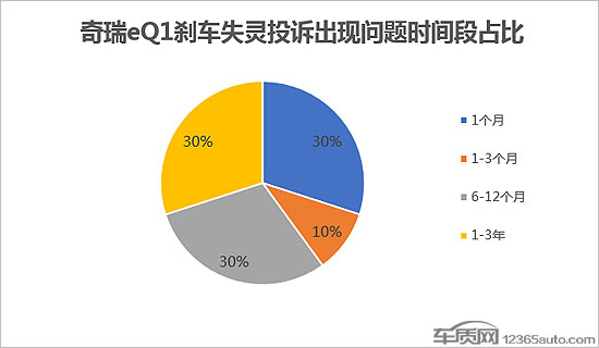 結(jié)合出現(xiàn)問題時間段及行駛里程來看,幾乎絕大部分奇瑞eQ1“剎車失靈”投訴問題,出現(xiàn)在購車1.5年/行駛20000km內(nèi)。其中購車3個月內(nèi)出現(xiàn)問題的車輛占比達40%,而行駛里程在10000km內(nèi)的車輛占比達60%。由此可見,“剎車失靈”問題并非因車輛長時間使用,部件老化、磨損等原因?qū)е?,因此車主懷疑奇瑞eQ1的制動系統(tǒng)可靠性不佳或為癥結(jié)所在。
