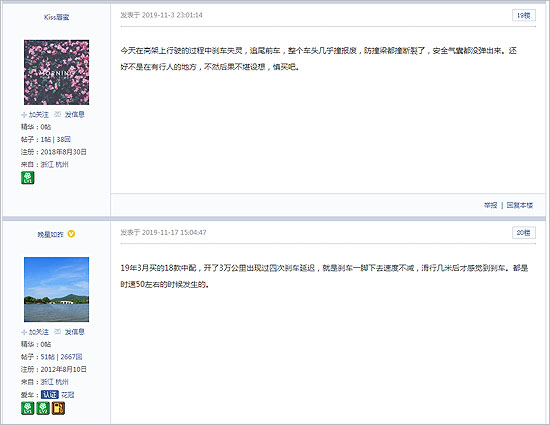在某網(wǎng)站論壇上有多位奇瑞eQ1車主遇到剎車失靈問題