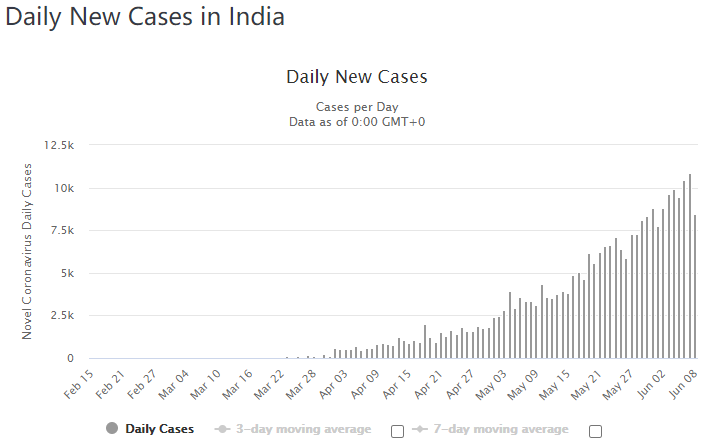 首先,截止5月底印度的疫情還未達(dá)到峰值,拐點(diǎn)更是遙遙無期。
