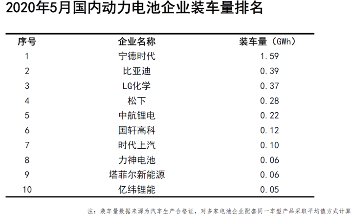 企業(yè)方面,2020年5月,我國新能源汽車市場共計42家動力電池企業(yè)實現(xiàn)裝車配套,較4月份增加1家。排名前3家、前5家、前10家動力電池企業(yè)動力電池裝車量分別為2.4GWh、2.9GWh和3.3GWh,占總裝車量比分別為67.1%、81.5%和92.8%。
