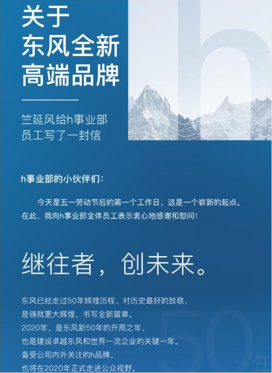 北汽率先推出ARCFOX品牌,隨后上汽也曝出正在籌劃全新的高端品牌M,而在5月6日,東風(fēng)汽車(chē)董事長(zhǎng)、黨委書(shū)記竺延風(fēng)的一封給h事業(yè)部員工的一封信,也讓東風(fēng)汽車(chē)h品牌首次步入大家的視野。