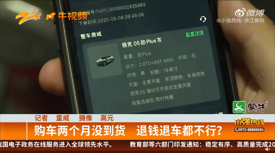 定車兩個(gè)月,新車為何遲遲不到?杭州駿豪領(lǐng)克空間銷售總監(jiān)表示,可能是因?yàn)榘ㄅ女a(chǎn)各方面的原因,車輛也是在7月初的時(shí)候,工廠才進(jìn)行了車輛匹配。4S店方面確認(rèn),李先生的車輛可以在三天內(nèi)到店,但是李先生態(tài)度堅(jiān)決,兩個(gè)月的等待讓他徹底失望,堅(jiān)持要退還5000元定金。