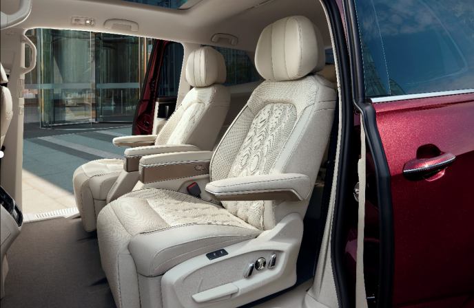 威然對(duì)第二排的乘客更是關(guān)懷備至,Captain Chair行政級(jí)第二排禮賓座椅采用高檔的真皮打孔座椅,優(yōu)雅的菱形格紋理,輔以滾邊與絎縫工藝,體現(xiàn)精致與檔次感。座椅集電動(dòng)調(diào)節(jié)(靠背及腿托)、主動(dòng)通風(fēng)功能、加熱功能于一身,更有3種模式x3種檔位氣動(dòng)按摩功能,為二排貴賓帶來(lái)尊享體驗(yàn)。