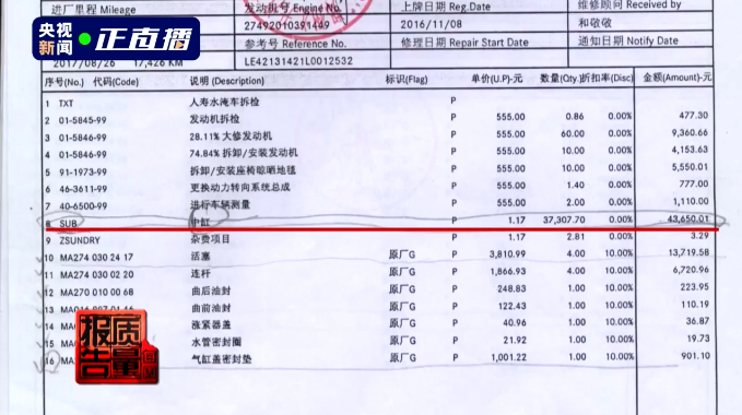 蔡先生就事件向相關(guān)部門舉報(bào),并于2017年底立案調(diào)查。經(jīng)鄭州市市場監(jiān)督管理局調(diào)查,發(fā)動機(jī)爆缸的起因是發(fā)動機(jī)大修,而發(fā)動機(jī)最核心的部件就是發(fā)動機(jī)中缸。通過對維修明細(xì)清單分析發(fā)現(xiàn),發(fā)動機(jī)中缸沒有產(chǎn)品代碼和標(biāo)志說明,這一發(fā)現(xiàn)證實(shí)4S店并沒有使用原廠配件。另外,眾所周知每一臺車的發(fā)動機(jī)總成上都有一個獨(dú)一無二的識別編號,這個編號被刻在中缸側(cè)壁上,而從蔡先生車上拆下來的新中缸上面同樣刻有編號,但是與蔡先生駕駛證上的編號一致,這顯然不符合常規(guī)。