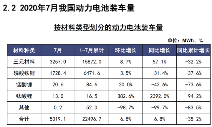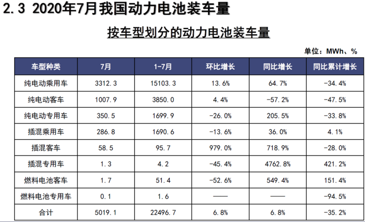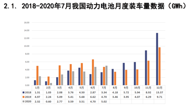 裝車量來看,2020年7月,我國動力電池裝車量5GWh,同環(huán)比均上升6.8%。