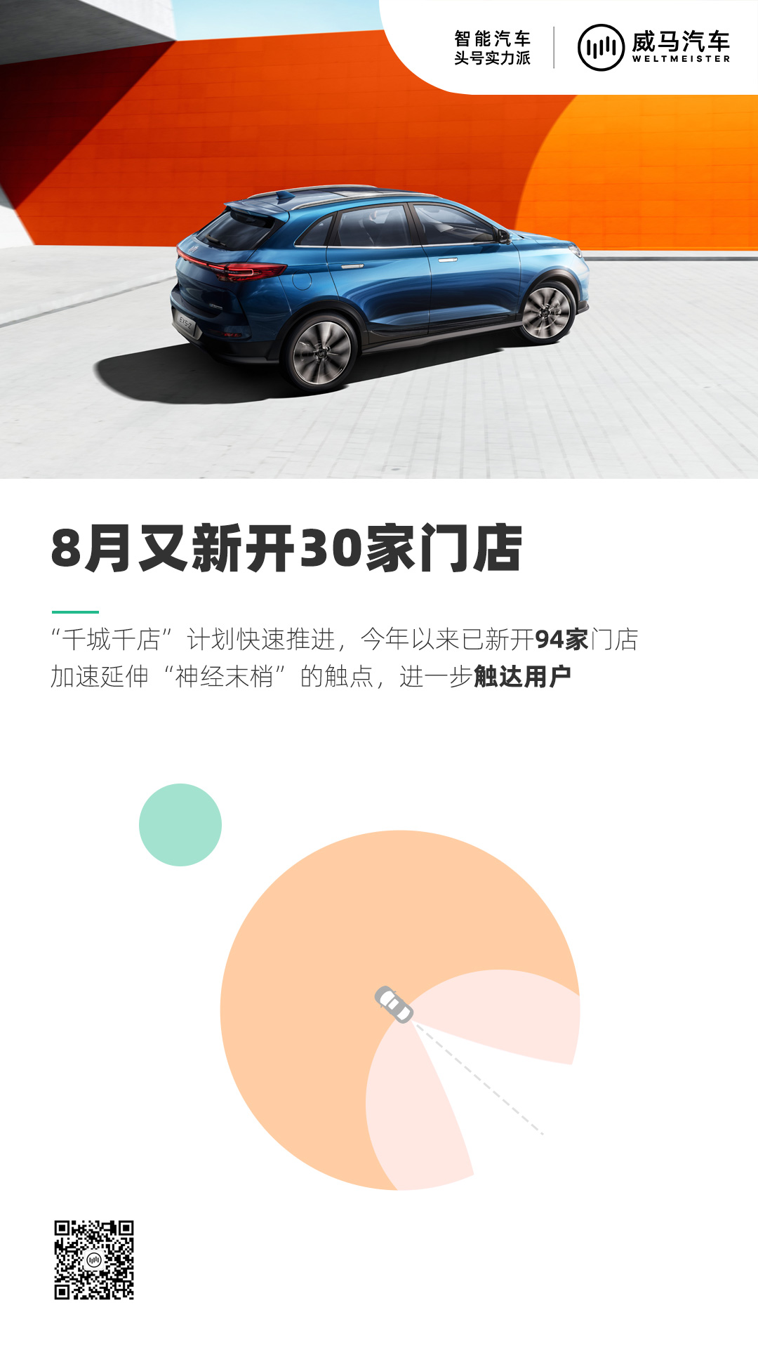 威馬汽車是目前智能電動汽車中唯一聚焦15-25 萬元主流乘用車市場的品牌。8月,威馬在全國又新開30家門店,今年以來新開門店數(shù)量已達(dá)94家。