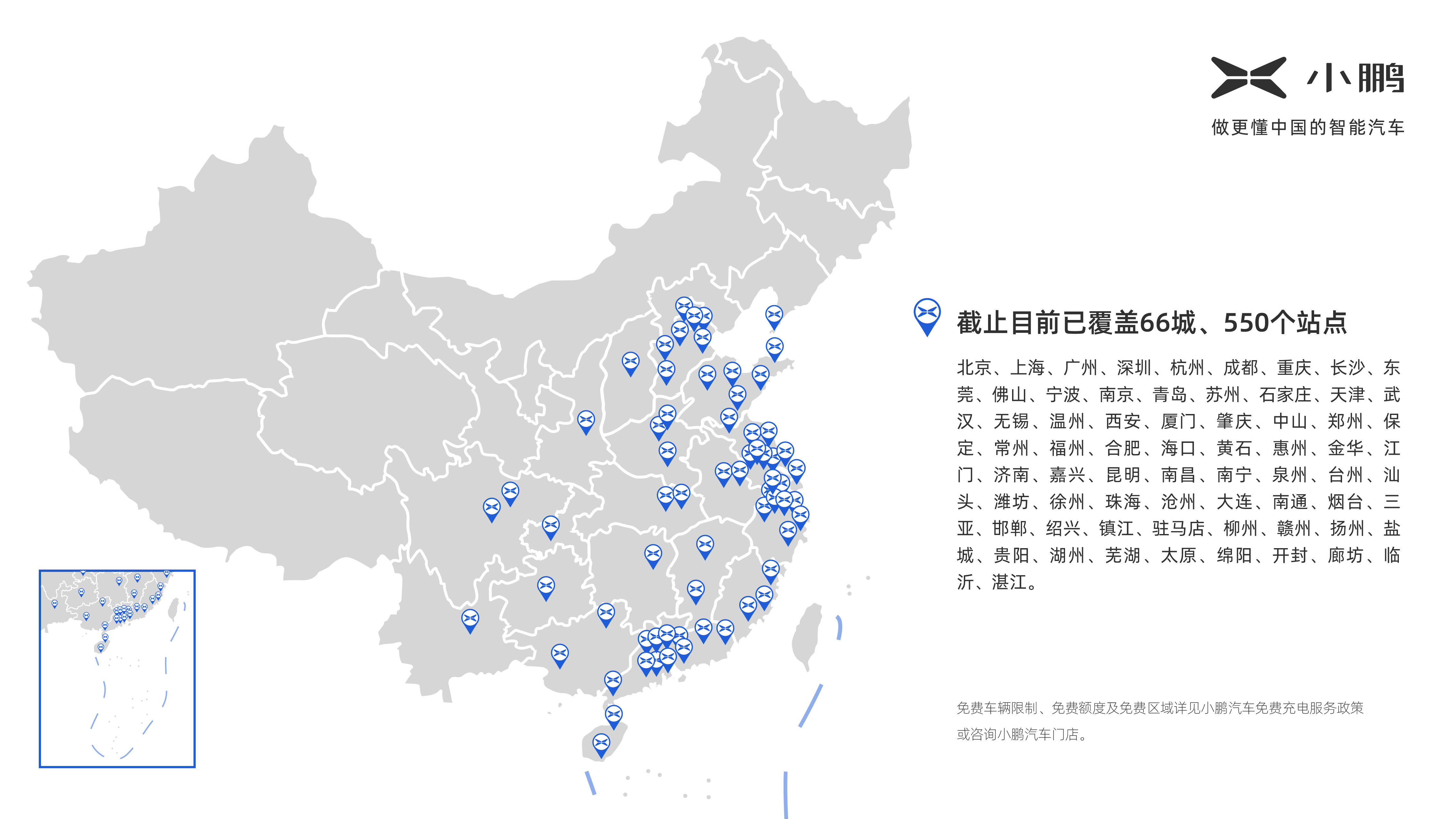 截止到12月15日,小鵬超充已經(jīng)實現(xiàn)在66個城市、550個站點享終身免費充電服務(wù)。