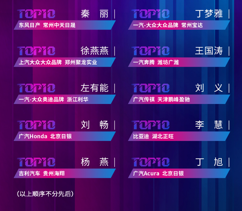 2020全國十佳金扳手“心悅誠服”服務顧問獲獎名單